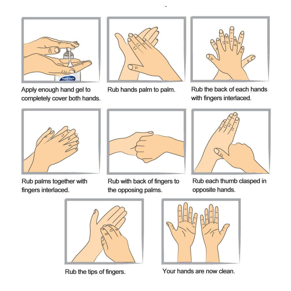 Directions: Apply a small amount of hand gel to your palm and rub both hands together thoroughly until dry.